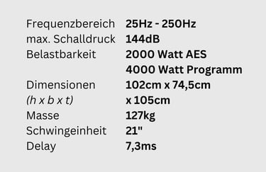 Das Gehäuse des H2101 ist auf höchste Effizienz und unverfälschte Klangtreue optimiert. Die durchdachte Konstruktion sorgt für eine außergewöhnlich druckvolle Basswiedergabe, die auf die höchsten Anforderungen im Audiobereich abgestimmt ist. Ob für energiegeladene elektronische Musik, dynamische Live-Konzerte oder den Einsatz in Discotheken – der H2101 überzeugt durch kompromisslose Klangqualität, robuste Langlebigkeit und vielseitige Einsatzmöglichkeiten. Damit ist er die ideale Wahl für Anwender, die maximale Leistung und Zuverlässigkeit verlangen.